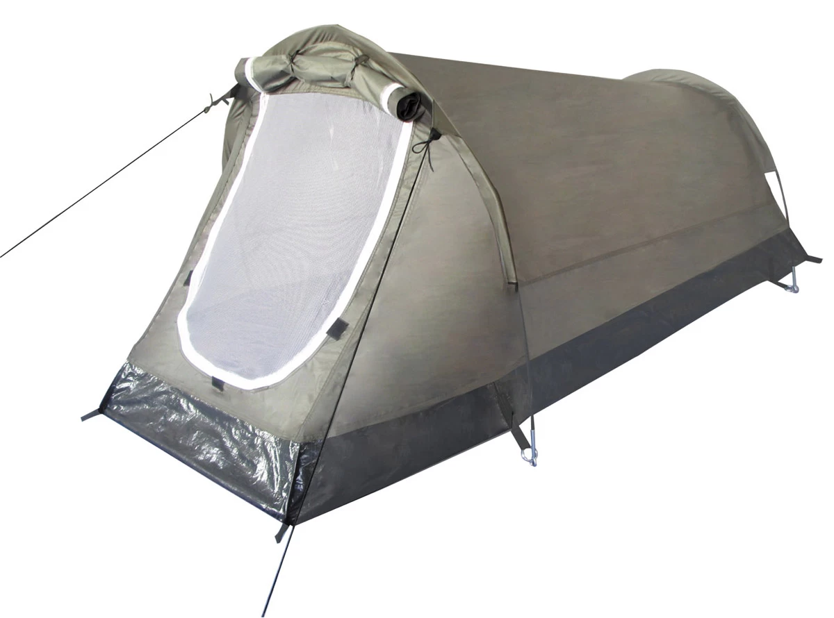 Das Zelt Hochstein von Fox Outdoor ist ein 2-Personen Zelt mit Moskitonetz am Eingang und praktischer Tragetasche.