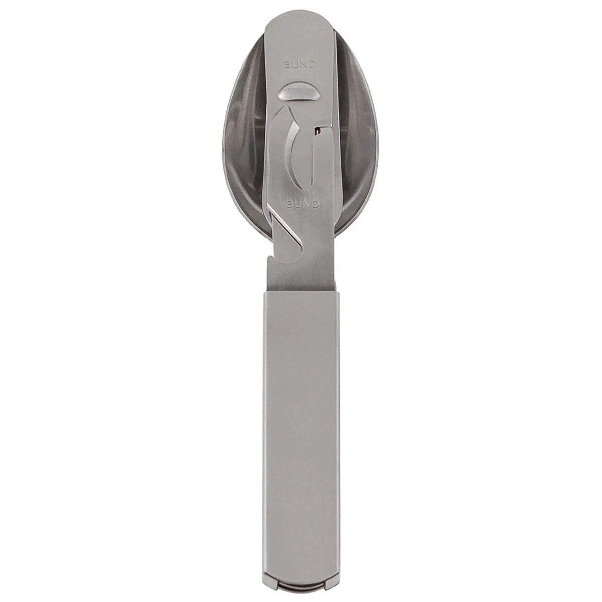 Bundeswehr Outdoor Essbesteck in schwerer, hochwertiger Ausführung aus rostfreiem Stahl. Das 4-teilige Feldbesteck oder Camping Besteck besteht aus Löffel, Gabel, Messer und Spezialhalterung mit Flaschen- und Büchsenöffner, die platzsparend zusammensteckbar sind.
