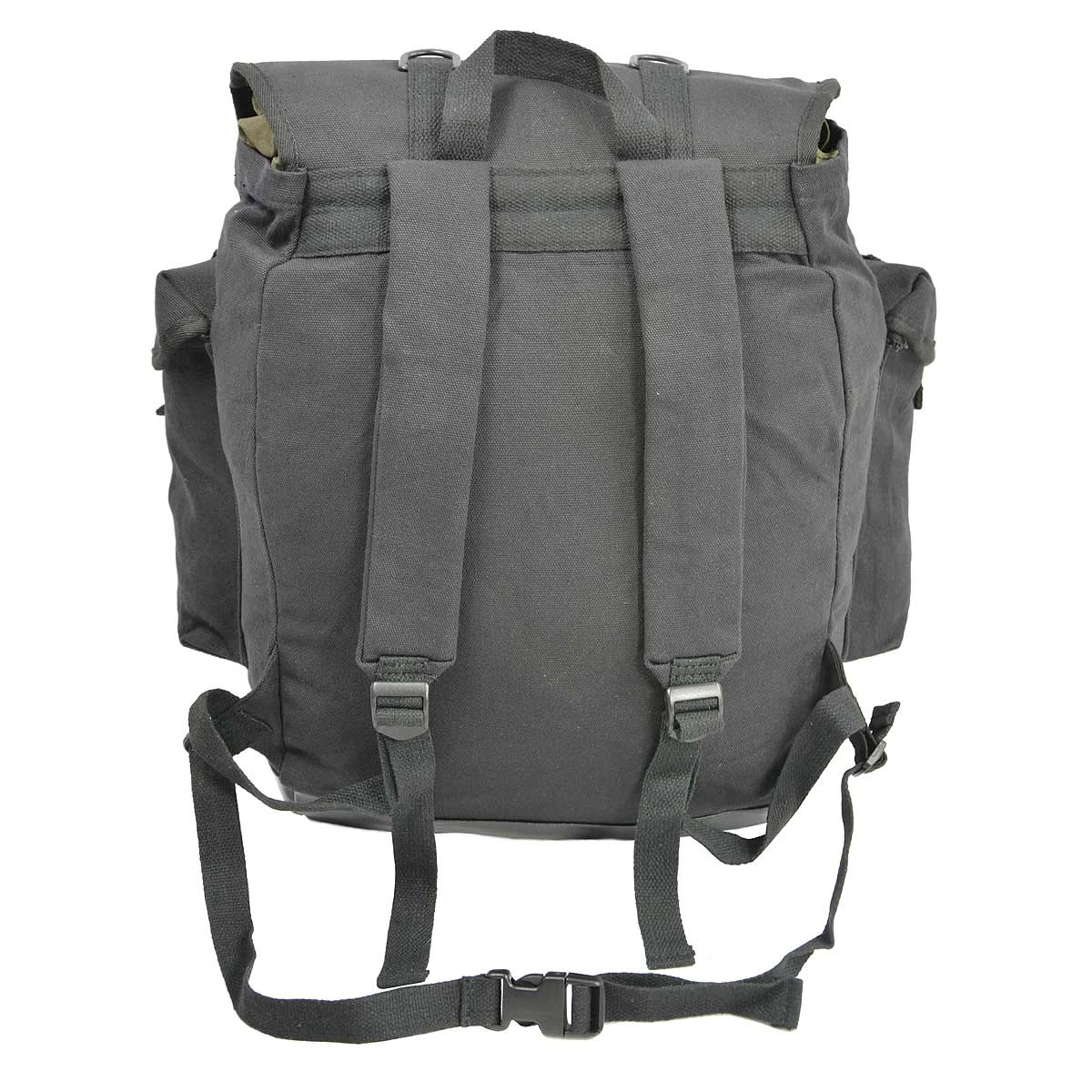 Der Bundeswehr Gebirgsjäger Rucksack bietet viel Stauraum im hochwertigen Baumwollmaterial und machen diesen Rucksack zum beliebten Allrounder. Der Jagdrucksack (neues Modell) von Stock A&B ist der perfekte Begleiter für jede Tagestour in den Bergen. Wird der Backpack auf rauem Felsen oder auf feuchtem Untergrund abgestellt, so bleibt der Inhalt dank dem wasserdichten PVC-Boden weiterhin trocken. Ein geräumiges Innenfach, sowie zwei seitlich aufgesetzte Außentaschen bieten trotz des kompakten Formats des Jägerrucksacks reichlich Stauraum. Dank insgesamt vier D-Ringe, sowie Kompressionsriemen mit Klickverschluss können außen am Rucksack weiteres Equipment wie Isomatte oder Schlafsack befestigt werden. Der besonders breite Deckel, sowie Seitentaschen-Patten schützen das Gepäck vor Witterungseinflüssen. 2 verstellbare und gepolsterte Schultertragegurte und ein Bauchgurt sorgen für den Tragekomfort. Der Rucksack hat ausserdem 2 Seitentaschen und mehrere Befestigungsmöglichkeiten für weitere Ausrüstungsgegenstände (D-Ring).