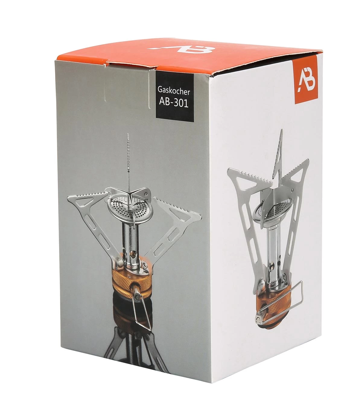 Der Camping und Outdoor Gaskocher Power AB-301 von Blöchl ist mit seinen 3000 Watt Leistung ein echtes Kraftpaket. Ein weiteres Hightlight Des Gaskochers ist das Windschutz-Design des Brenners. Die 3 senkrechten Windsperren garantieren auch bei windigen Verhältnissen eine gerade Flamme und somit eine ideale Wärmeabgabe an Topf, Pfanne o.ä. Durch die breit ausklappbaren Topfträger bietet der Kocher AB-301 eine gute und stabile Auflage für Töpfe bis 20cm Durchmesser und einem Gewicht bis 5kg. Der Regler der Flamme lässt sich auch mit Handschuhen noch gut bedienen und kann stufenlos reguliert werden. Die Regulierung selbst ist sehr fein einstellbar und hilft dadurch auch Brennstoff zu sparen. Der Camping Gaskocher AB-301 läuft mit allen herkömmlichen Schraubkartuschen mit Standard Lindur-Ventilsystem.