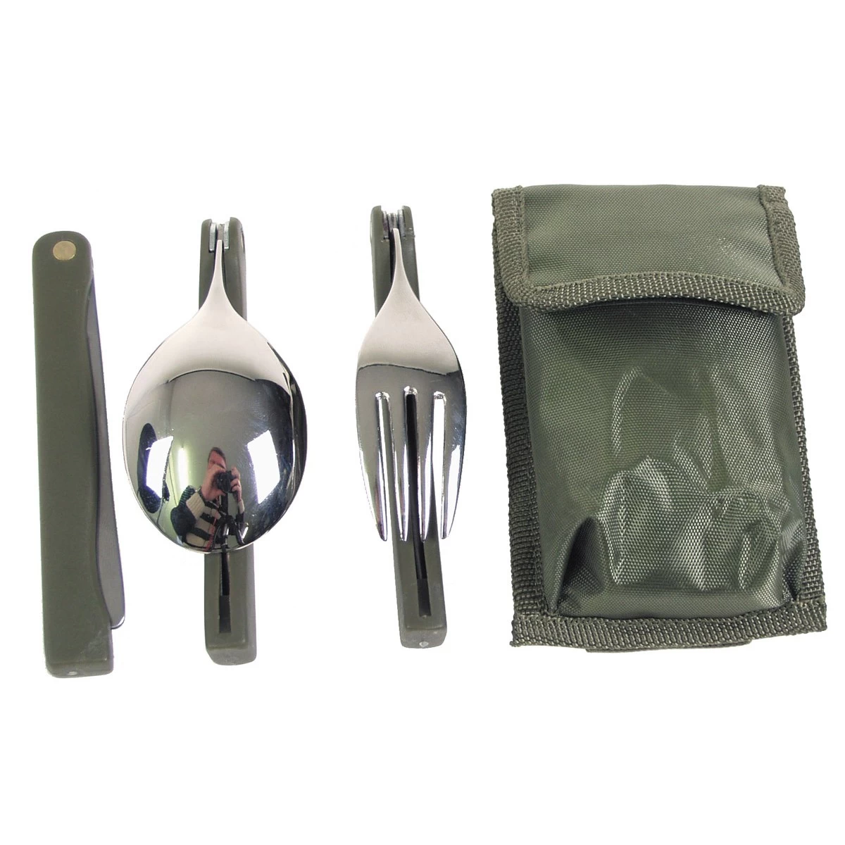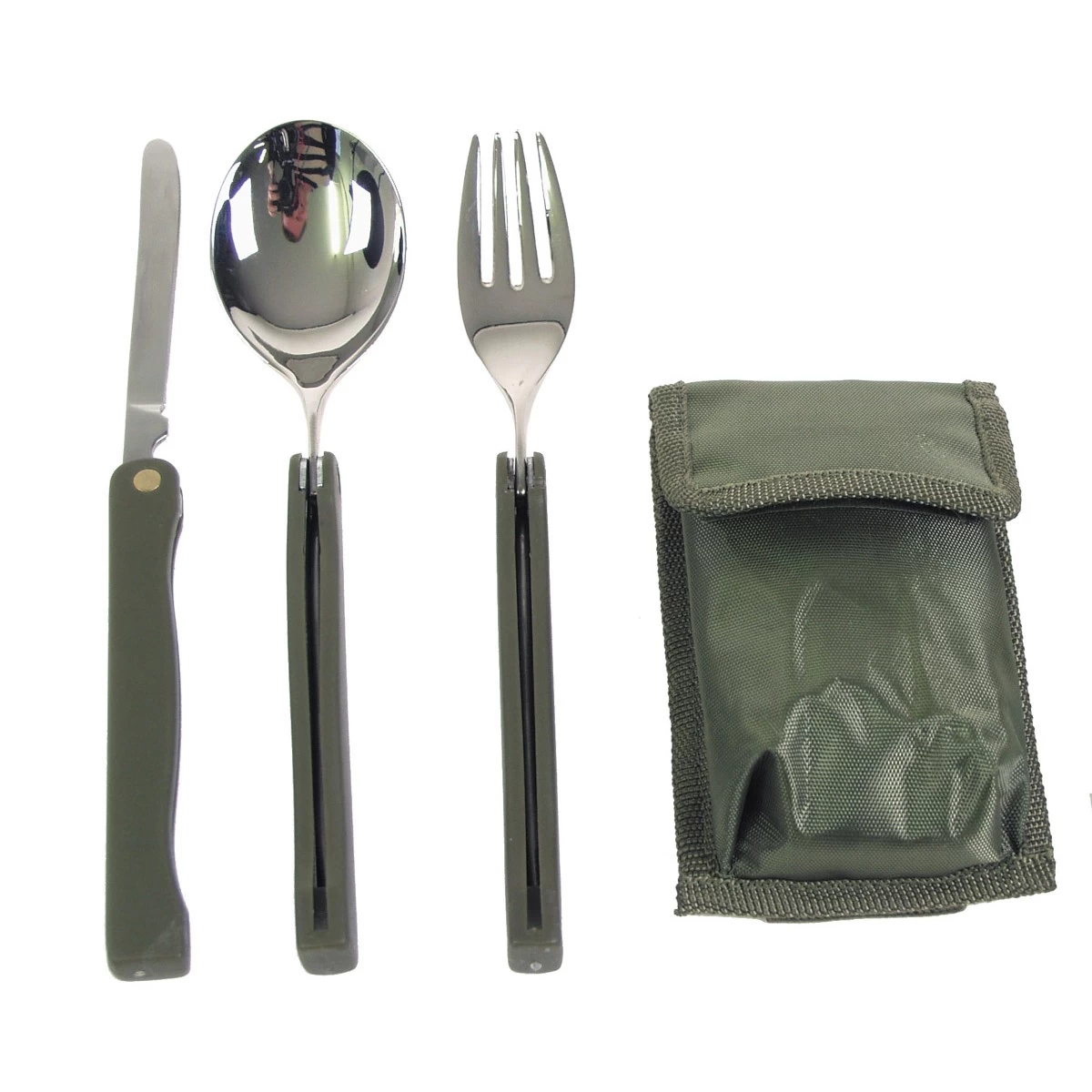 Das 3-teilige Camping Besteck von Fox Outdoor besteht aus Messer, Gabel und Löffel. Das Besteck lässt sich zusammenklappen und anschliessend praktisch in der Nylon Gürteltasche verstauen. Sehr beliebt bei Camper und Wanderer.
