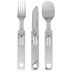 Das Edelstahl Faltbesteck C1 von Roxon bietet höchsten Komfort beim Speisen unterwegs, beim Camping uvm. Dank Magnverschluss werden Messer, Gabel und Löffel zu einer Einheit super kompaket verpackt und verstaut. Alle Bauteile des Outdoor Besteck besitzen abgerundete Kanten, liegen dadurch sehr angenehm in der Hand und lassen sich ebenso sehr gut reinigen. Das Messer besitzt eine teilgezahnte Klinge, und macht dabei das Schneiden von Brötchen oder Fleisch sehr komfortabel. Das Roxon Faltbesteck C1 ist aus hochwertigem 3Cr13 Edelstahl gefertigt – absolut rostfrei und langlebig. Das Set wird inkl. Roxon Transport- und Aufbewahrungstäschen geliefert.