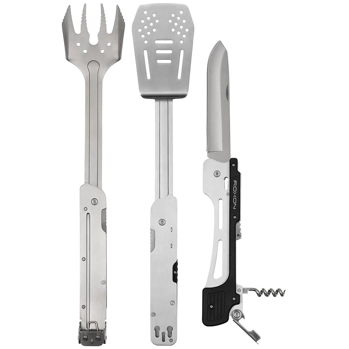 Das Roxon MBT3 ist das perfekte Tool für alle Grill- und BBQ-Enthusiasten. Mit dem 6 in 1 Multifunktionsset von Roxon sind alle wichtigen Utensilien in einem kompakten Tool kombiniert und schnell griffbereit. Das Tool aus hochwertigem Edelstahl beinhaltet Grillgabel, Grillwender und Grillzange in höchster Qualität, ergänzt durch Messer, Flaschenöffner und einem Korkenzieher.