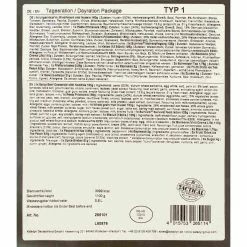 Mit der Trek´n Eat Tagesration Typ 1 sind Sie für einen Tag Nahrungstechnisch komplett versorgt. Mit Frühstück, zwei Hauptmahlzeiten und Getränke ist für eine Person und einen Tag alles dabei. Der grüne Tagesbeutel beinhaltet Ungarntopf, Pasta Primavera, Vollkornmüsli, Kaffee, Tee, Kekse, Fruchttrink und Snacks. Die Fertiggerichte sind komplett ohne Geschmacksverstärker und Konservierungsstoffe und sind dennoch 3 Jahre haltbar. Zur Zubereitung werden insgesamt rund 5,6 Liter Trinkwasser benötigt. Zur Zubereitung gießen Sie einfach kochendes Wasser bis zur Markierungslinie auf der zugehörigen Tüte und rühren diese sorgfältig um. Anschliessend den Beutel verschliessen und ca. 8-10 Minuten ziehen lasse, fertig. Das Müsli kann auch mit kaltem Wasser zubereitet werden.