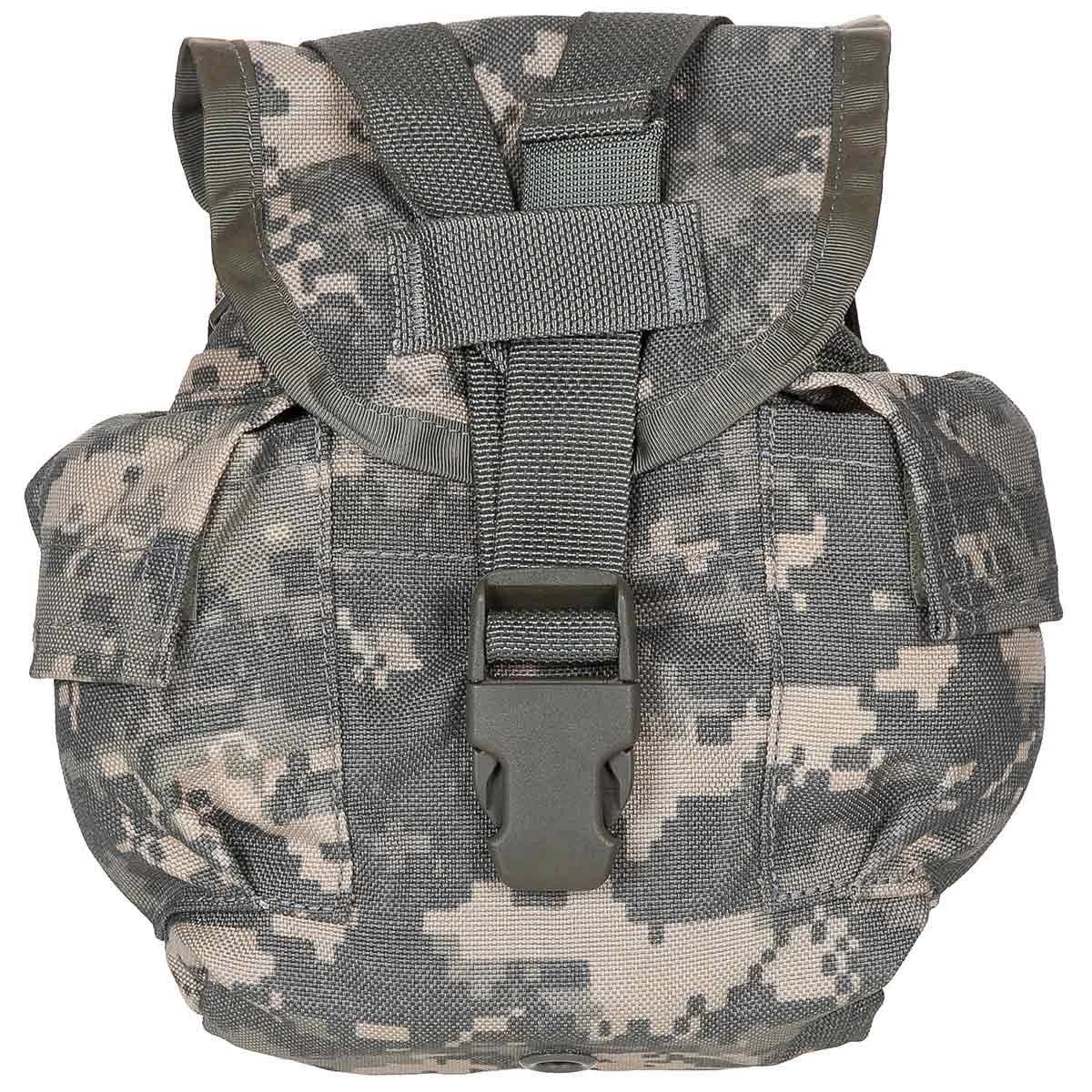 Bei dem Set handelt sich um eine US Feldflasche Import von MFH mit einer Original Molle Feldflaschentasche der US Army in at-digital. Die Kunststoff Feldflasche mit einem Volumen von 1 Liter ist in der praktischen Molle-Tasche sicher verstaut und schnell griffbereit. Dank 2 Molle Schlaufen auf der Rückseite der Tasche kann diese an jeden beliebigen Molle Träger wie Rucksack, Weste usw. angebracht werden. Die Molle Trinkflaschen Tasche hat 1 Innenfach mit Kordelzug und 2 seitlich aufgesetzte Taschen mit Klett für zusätzliches Equipment.