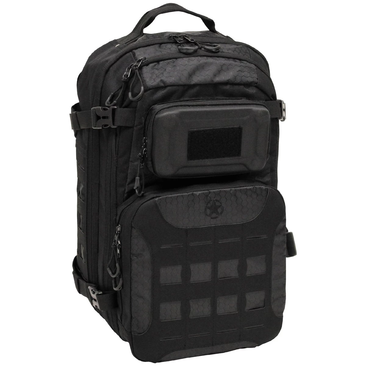 Der US Rucksack Operation I mit vielen Funktionen und Laser-Cut-Aufnahmesystem an Front und Seite ist sehr vielseitig einsetzbar. Besonders durchdacht gemacht ist die große Fronttasche in Hardcover-Ausführung. Diese ist innen mit Molleschlaufen versehen. So können z.B. Smartphone-Molletaschen o.ä. angebracht werden, die durch das Hardcover vor Stößen oder sonstige äußere Einwirkungen geschützt werden. Auch das Hauptfach ist gut durchdacht. Unter anderem befindet sich ein Fach für ein Trinksystem. Des weiteren gibt es nach außen 2 Durchführungen für Drinkschlauch und/oder Kopfhörerkabel.