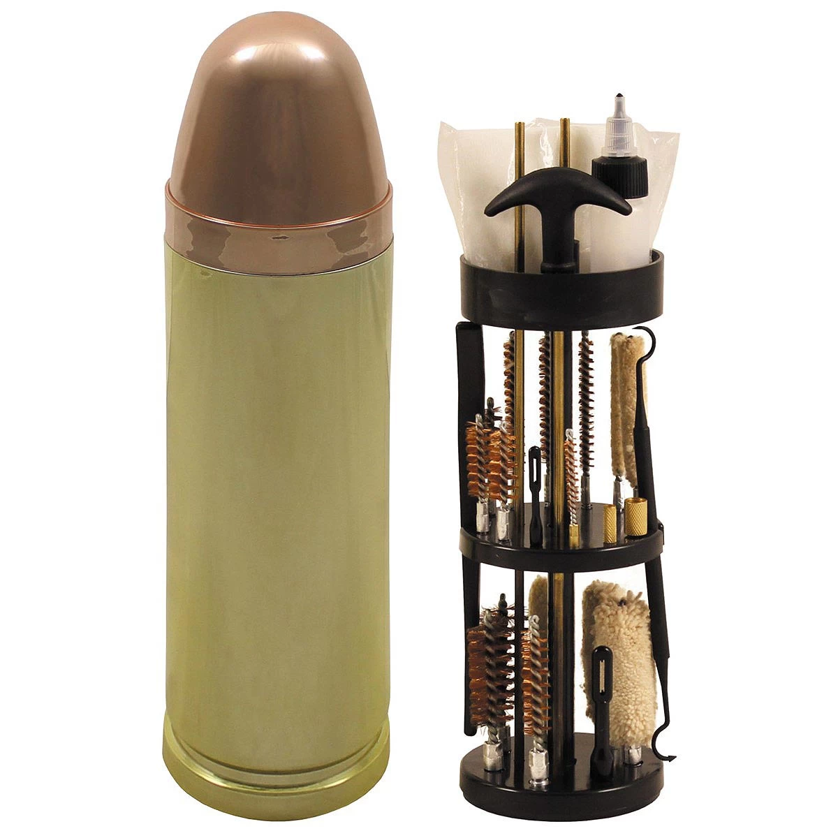 Das MFH Waffenreinigungsset ist ein Multikaliber Reinigunsset zur gründlichen Reinigung von Waffen aller Art. Das umfangreiche Set ist individuell kombinierbar und alle Teile können durch Aufschrauben verlängert oder ausgetauscht werden. Somit können Gewehre und Pistolen verschiedenster Kaliber optimal gereinigt werden. Aufgrund der großen Auswahl an Bürsten, Wollwischer usw. lassen sich nicht nur „echte“ Schusswaffen reinigen, sondern ist das Set auch hervorragend für Airsoft-Waffen geeignet. Übersichtlich sortiert und verpackt ist das komplette Waffen Reinigungsset in einer Box in Patronen-Form, welche auch optisch ein absoluter Hingucker ist.