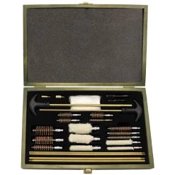 Das MFH Waffen Reinigungsset Premium von MFH ist für Pistolen und Gewehre geeignet. Das Set wird in einer edlen und stabilen Holzbox geliefert. Jedes Einzelteil kann in das dafür vorgesehene Ablagefach gelegt werden. So ist immer der richtige Reinigungsstab oder die richtige Drahbürste greifbar. Als Basisteil ist immer je 3-teiliger Messingstab für Gewehre (6mm) und Pistolen (4mm) im Sortiment.
