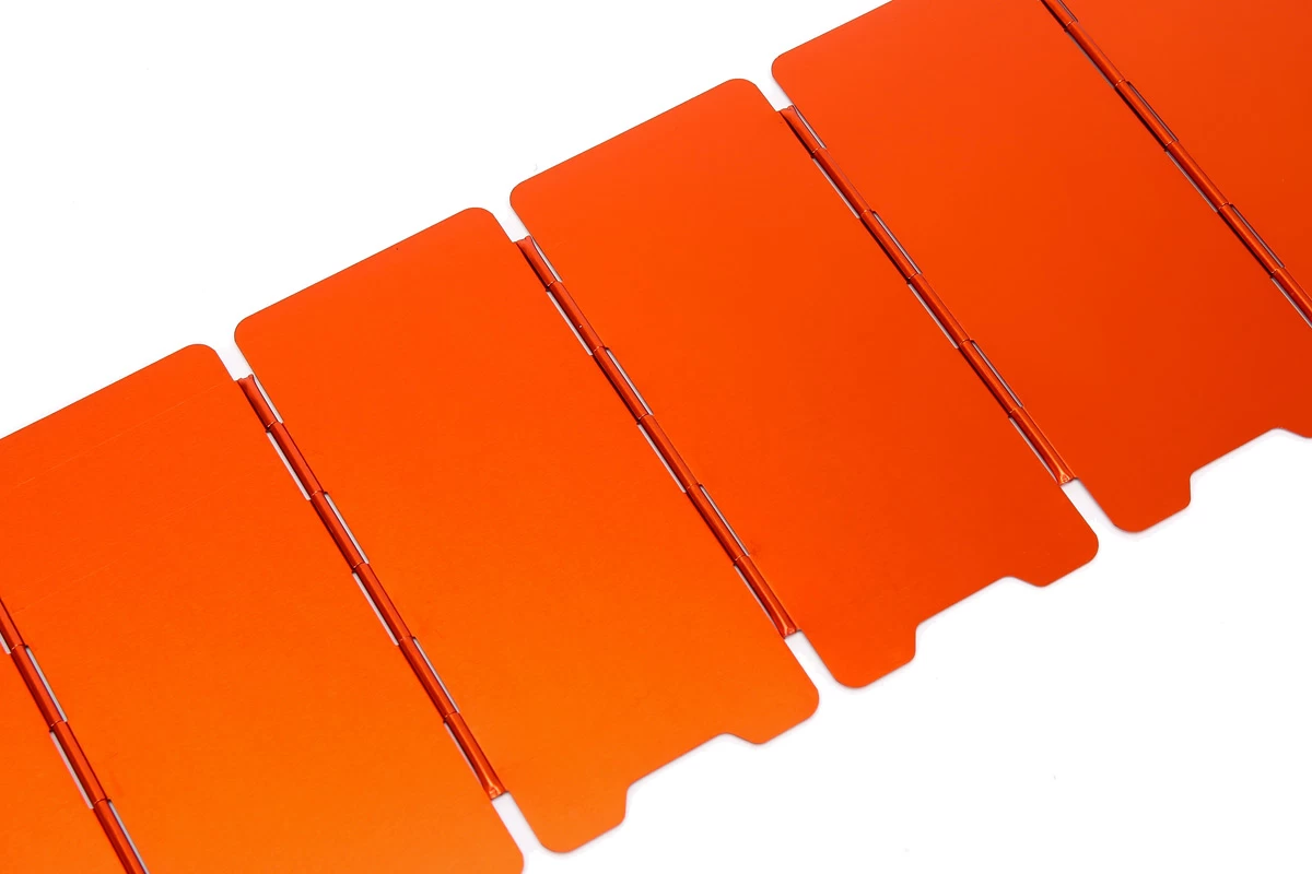 Der Alu Windschutz faltbar mit einer offenen Grösse von 60x14cm ist für Camping Kocher und sonstige Feuerstellen ein perfekte Hilfe auch bei starken Winden. Durch die ausfahrbaren Heringe bekommt man eine hervorragende Verankerung im Boden. Der faltbare Windschutz hat eine Fläche von 60x14cm und wird beispielsweise um den Campingkocher aufgebaut um diesen von Wettereinflüsse zu schützen und die Hitze da bleibt, wo sie gebraucht wird. Ihre Mahlzeit wird schneller warm und spart zusätzlich Brennstoff. Voll ausgeklappt sorgen 9 Lamellen mit einer Gesamtlänge von 60cm für perfekte Standfestigkeit bei jeder Witterung und auf jedem Untergrund. Die einzelnen Faltlamellen haben Ausstanzungen unten, damit genügend Zuluft für den Kocher oder die Feuerstelle vorhanden ist.